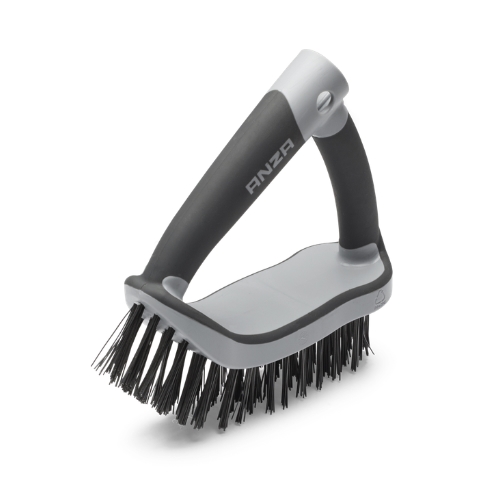 Stålbørsten fra Anza har et grebsvenligt håndtag, der giver mulighed for nemt at bruge to hænder, men den kan selvfølgelig også bruges med en hånd.