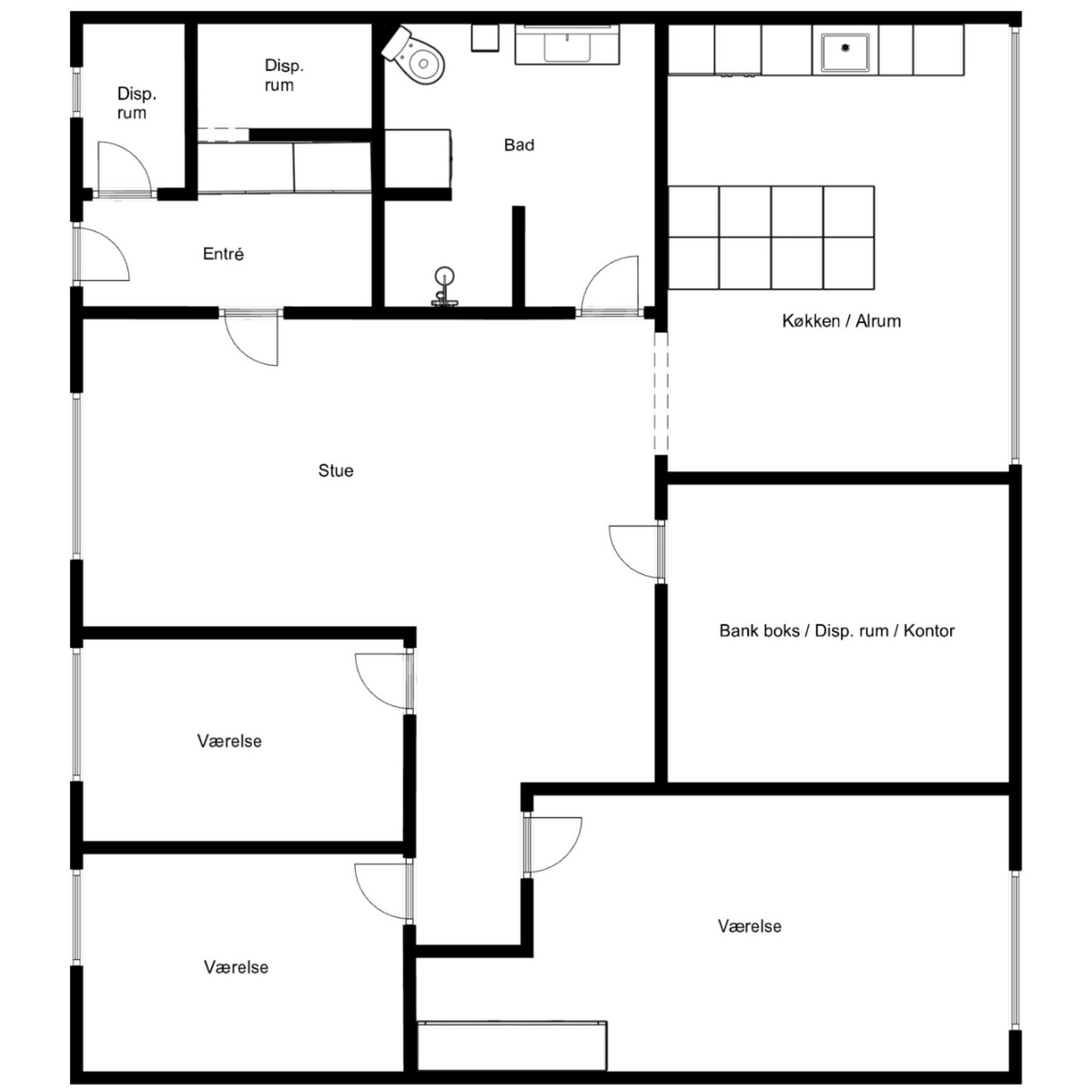Lejligheden rummer 4 værelser fordelt på 142m2, med en tilhørende have og terrasse. Det specielle ved denne lejlighed, er at der medfølger et depotrum, som er den gamle bankboks med oprindelig dør ind til boksen. Så ønsker man noget autentisk og en anderledes bolig skal man bo her.