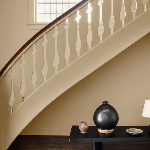 Jotun Caravan er en varm, brunlig, gylden nuance, der minder om en lysere udgave af farven Cashmere, og har en mere rødlig og varm tone end farven Raw Canvas.